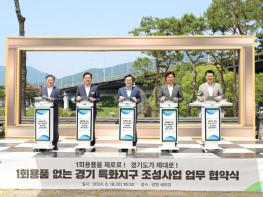 경기도가 기후위기 대응을 위해 부천시, 안산시, 광명시, 양평군 등 4개 시군 5곳에 1회용품 없는 특화지구를 조성한다.김동연 경기도지사는 18일 양평군 세미원에서 조용익 부천시장, 김대순 안산부시장(대
