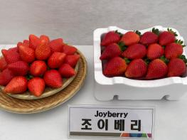 충남도 농업기술원은 국립종자원으로부터 딸기 촉성재배용 신품종 ‘조이베리’의 품종보호권을 획득했다고 26일 밝혔다.조이베리는 식물체의 세력이 강하고, 과실의 평균 무게는 20.4g으로, 15g 내외의 설