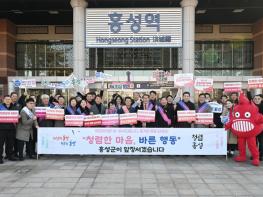 홍성군은, 지난 25일 홍성역 등 주민다중이용 공간에서 군수, 부군수를 비롯한 간부공무원들과 홍성군민이 협력하여 홍성군의 청렴문화 확산을 위한 민관 합동‘청렴동행’캠페인을 추진했다고 밝혔다.이번