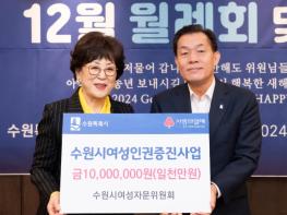 수원시 여성자문위원회가 “수원시 여성 권익 증진 사업에 사용해 달라”며 1000만 원을 수원시에 기부했다. 기부금은 경기도사회복지공동모금회 지정 기탁 방식으로 수원시 여성 권익 증진 사업에 사용할