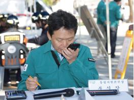 청주시는 7일 오후 지진으로 인한 건물 붕괴, 화재 발생 등 재난에 대응하기 위해 상당구 대성연립에서 합동 훈련을 진행했다. 훈련에는 청주시 10개 부서와 청주동부소방서, 상당경찰서, 한국전력 동청주지