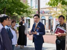 박경귀 아산시장이 24일 지중해마을 주민들과 만나 지중해마을 명소화를 위한 소통의 시간을 가졌다. 이날 박경귀 시장은 민선 8기 현장 소통 프로그램인 ‘우리동네 골목대장’의 일환으로 탕정면 지중해마