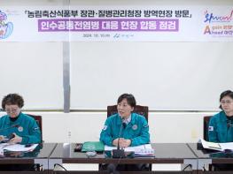아산시는 농림축산식품부, 질병관리청, 농촌진흥청, 충청남도, 충남도 보건환경연구원 등이 함께하는 인수공통전염병 방역관리를 위한 현장 점검 및 간담회가 10일 아산시 농업기술센터에서 열렸다고 밝혔다