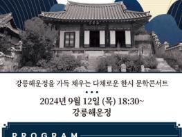 강릉문화원은 조선 중기 강릉 출신 문장가 어촌 심언광의 생애와 문학을 재조명하는 문학콘서트 ‘제11회 어촌 심언광 문학의 밤’을 오는 12일 18시 30분 강릉해운정에서 개최한다. 이번 행사는 어촌 심언