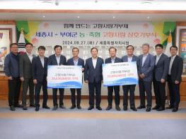 세종특별자치시가 27일 시청 세종실에서 세종시-부여군 농축협 간 고향사랑기부제 상호 교차기부 전달식을 개최했다.세종시와 부여군 농축협의 교차 기부는 고향사랑기부제 시행 첫해인 지난해부터 제도 활