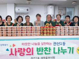 수원시 권선구 권선1동 새마을부녀회는 지난 20일 사랑의 반찬나누기 행사를 실시했다.이날 부녀회 회원들은 무더위에도 아침 일찍부터 오이피클, 배추김치, 제육볶음 등 밑반찬을 준비했고, 관내 도움의 손