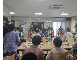 갈산문화예술단이 지난 27일 갈산면 신곡마을에서 대한민국 문화도시 예비사업의 일환인 찾아가는 문화예술 공연‘행복을 나누는 힐링 음악회’를 개최해 주민들에게 함박웃음을 선사했다.신곡마을회관에서