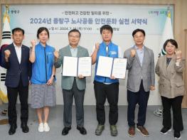 중랑구가 18일 중랑구청 임직원의 재해예방을 위해 서울특별시 중랑구청 공무원노조와 노사공동 안전문화 실천 서약식을 개최했다.‘노사 안전문화 실천 서약식’은 안전·보건·환경을 경영관리의 최우선 가