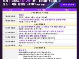 농림축산식품부는 10월 29일 서울 에이티(aT)센터에서 “농식품 분야 연구개발(R&D)의 현재와 미래전망”을 주제로 하는 '2025 농식품 연구개발(R&D) 미래전망 토론회(심포지엄)'을 개최한다. 최근 기후 위
