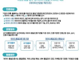 과학기술정보통신부는 인공지능의 신뢰성과 성능 향상에 필수적인 고품질 데이터의 활용을 확산하기 위하여, 데이터 품질인증 대상을 기존 정형데이터에서 비정형데이터 데이터 관리체계까지 확대하여 추진