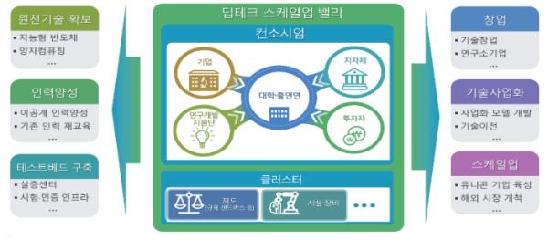 탁월한 원천기술을 보유한 거점대학·출연연을 중심으로 벤처·중소·중견기업, 창업·사업화 전문회사(기술지주회사, 창업기획자'AC', 벤처투자사'VC' 등), 특허법인, 지자체, 연구개발지원단, 테크노파크 등이 참여하는 밸리 운영 연합체를 구성하여, 수요기업 발굴부터 제품·서비스 상용화 및 해외진출까지 규모확대 단계별로 체계적인 맞춤지원을 제공하는 개방형 온라인 체제 기반(플랫폼)으로서의 전문역량을 확보했다.