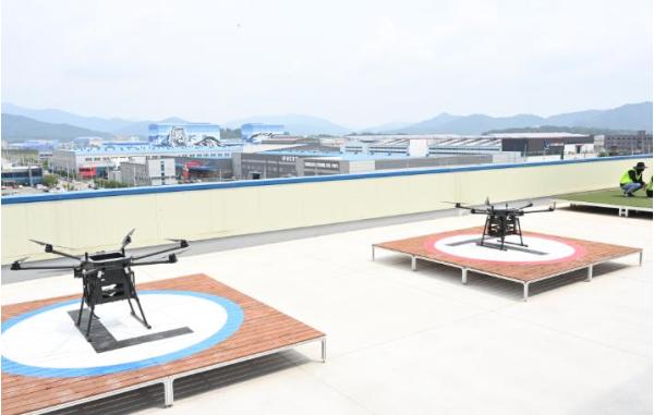 김천시가 국토교통부와 항공안전기술원이 주관하는 ‘2024년 드론실증도시 구축사업’에 3년 연속 선정된 가운데 지난 8일 오전 김천 산업단지 스마트물류센터 내 배송거점에서 ‘드론배송 시연회’가 개최됐다.