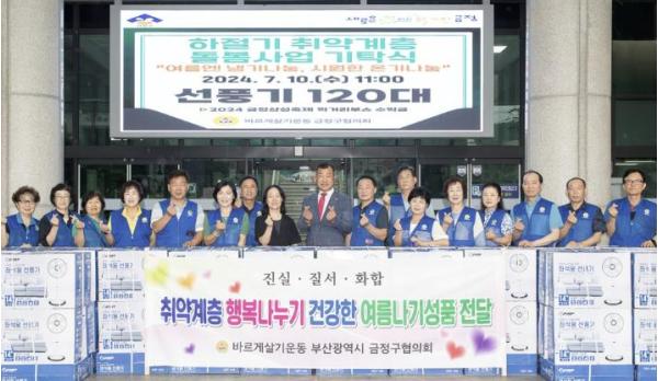 부산시 금정구는 지난 10일 바르게살기운동 금정구협의회에서 관내 취약계층 어르신을 위해 선풍기 120대를 기탁했다고 밝혔다.