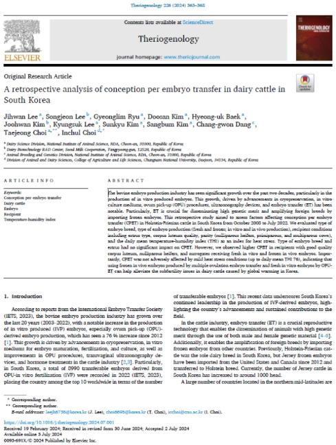 이번 연구 결과는 국제학술지 ‘국제수의산과학회지(Theriogenology)’ 2024년 9월호에 게재될 예정이다.