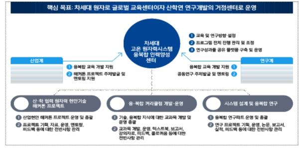 동 센터는 주관 대학을 중심으로 기업 수요를 반영한 문제해결 프로그램을 운영하고 정부 출연 또는 기업 연구기관에서 진행 중인 미래 원자력 시스템 설계에 참여하는 등의 다양한 산 ? 학 ? 연 협력 프로젝트를 추진한다.