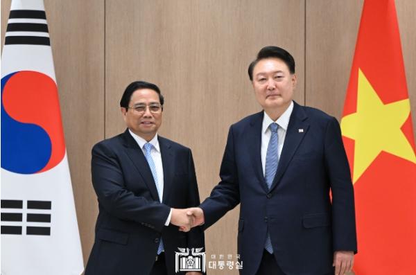 윤석열 대통령은 7월 2일 오후 한국을 공식방문 중인 '팜밍찡(Pham Minh Chinh)' 베트남 총리를 접견하고, 양국 관계 발전 방안에 대해 의견을 교환했다.