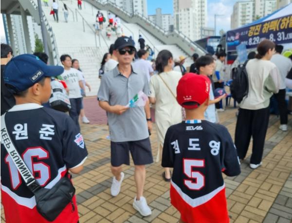 강진군 담당 공무원들은 날씨보다 더 뜨거운 야구 열정으로 후끈 달아오른 경기장에서 제2회 강진하맥축제와 강진 고향사랑기부제 기념품 배부 등 반값 여행 강진의 콘텐츠를 널리 알렸다.