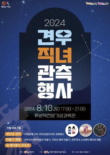 충남 서산시는 8월 10일 칠월칠석을 맞아 류방택천문기상과학관 일원에서 ‘견우직녀’ 관측행사를 개최한다고 6일 밝혔다.