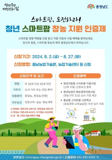 인증 청년농은 도지사 명의의 인증서를 수여하고, 청년 자립형 스마트팜 지원 사업 신청 자격을 부여한다.