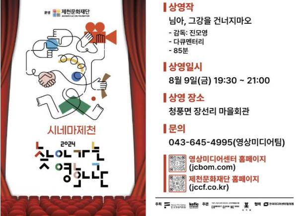 오는 9일 장선리 마을회관과 22일 제천실버복지관을 시작으로 11월까지 총 8차례에 걸쳐 예정될 예정이며, 읍면 행정복지센터, 재외동포·다문화 시설 등의 기관을 직접 방문하거나 제천영상미디어센터 3층 상영관에 초청해 무료 상영을 진행할 계획이다.