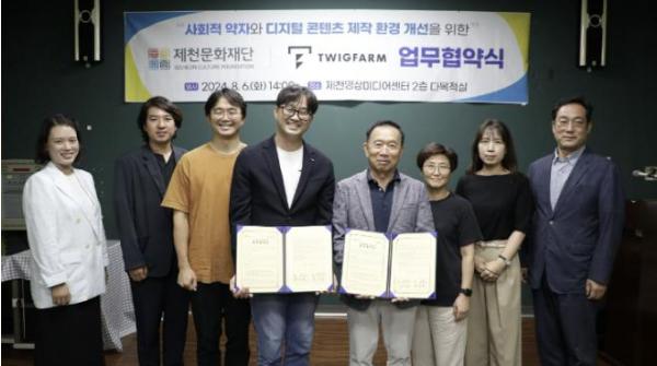 제천문화재단은 지난 6일 사회적 약자를 위한 디지털 콘텐츠 제작 환경 개선에 앞장서고자 AI 기반 콘텐츠 서비스 기업 ㈜트위그팜과 업무협약(MOU)을 체결했다.