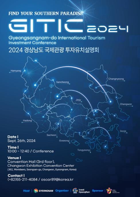 경상남도는 다음 달 26일 창원 CECO 컨벤션센터에서 열릴 2024 경상남도 국제관광 투자유치 설명회에 참석할 국내외 호텔·리조트 기업 관계자 모집을 시작했다.