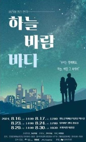 무장애 활성화를 위한 창작 연극 ‘하늘 바람 바다’가 8월 16일 오후 2시, 17일 오후 2시 2회에 걸쳐 안동문화예술의전당 백조홀에서 진행된다.