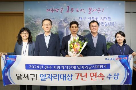 달서구는 민선7기에 이어 민선8기에도 일자리창출을 구정 최우선 과제로 삼았다. 7년 연속 일자리 대상 수상은 지역 특성을 담은 달서구만의 일자리사업 ‘달서웨이 일자리 프로젝트’로 5가지 전략을 수립해 다양한 일자리사업을 지속적으로 추진한 노력의 결실이다.