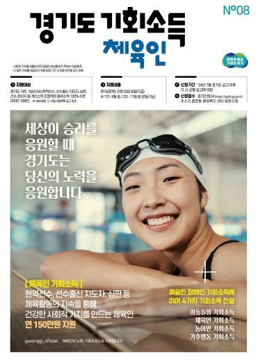 체육인 기회소득은 경기도 내 시군에 주민등록을 둔 19세 이상 체육인에게 연간 150만 원을 2회에 걸쳐 지급하는 것으로 개인별 소득 인정액이 2024년도 기준 중위소득 120%이하(월 2,674,134원)에 해당하는 체육인이 대상이다.