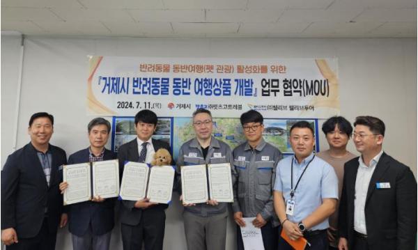 거제시는 11일 ㈜펫츠고트래블, ㈜웰리브 웰리브투어 등 10여 명이 참석한 가운데 반려동물 동반 여행상품 개발을 위한 업무협약을 체결했다고 밝혔다.