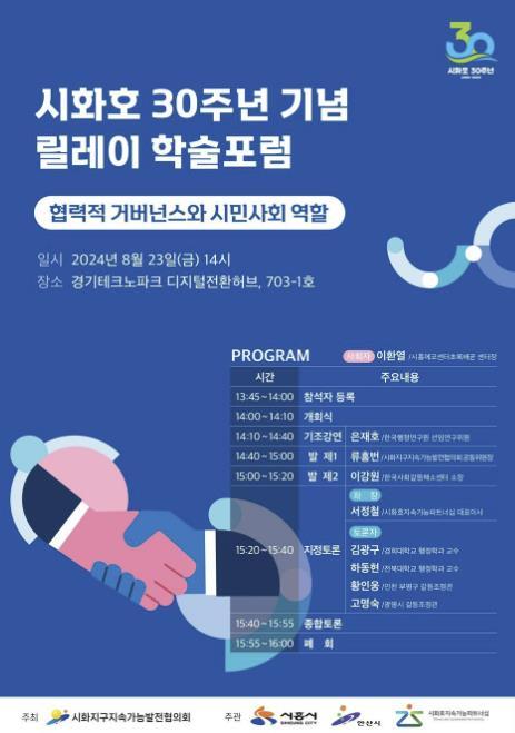 시는 올해 연말까지 시화호를 다양한 시각에서 재조명하는 총 4회의 포럼을 릴레이 형식으로 진행할 예정이다. 또한, 전국 사진전, 아카이브 구축, 인물 백서 제작 등 시화호 30주년 기념 사업도 추진 중이다.