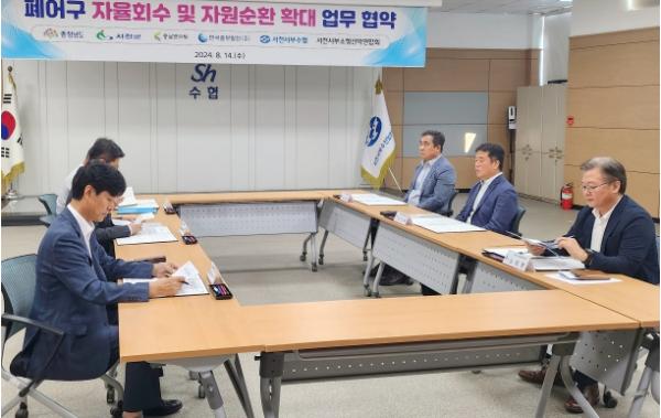 충남연구원은 14일 충청남도, 서천군, 한국중부발전(주), 서천서부수협, 서천서부소형선박연합회와 공동으로 충남의 폐어구 자율회수 및 자원순환 확대를 위한 업무협약을 체결했다.