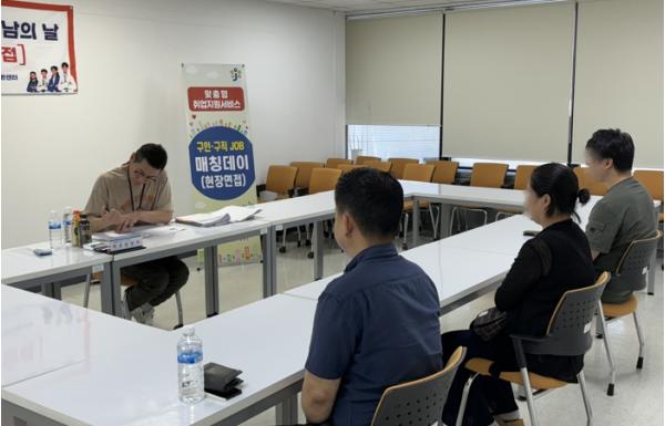 구인기업에서는 현장면접에 앞서, 면접 참여자들을 대상으로 근무 내용, 조건, 급여 등과 관련한 채용 설명회를 통해 기업에 대한 구직자들의 이해를 돕고 이날 채용 담당자와 구직자들이 단체 면접을 진행했다.