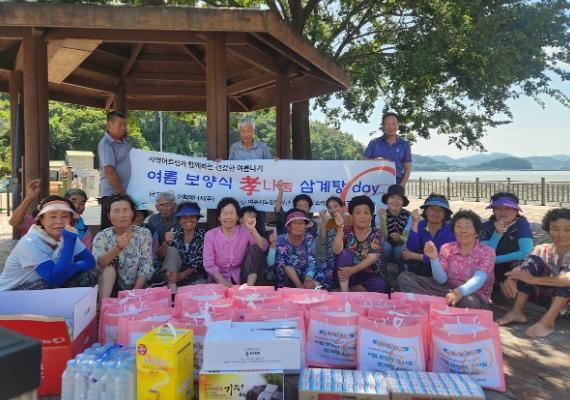 한화에너지㈜ 여수공장은 지난 14일 말복을 맞아 ‘여름 보양식 孝 나눔 삼계탕 day’ 행사를 열어 소라면 복산4구, 사곡4구 궁항마을을 찾아가 100여 명의 어르신에게 보양식을 대접했다.