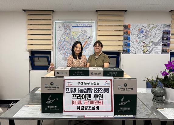 지난 13일, 부산 동구 좌천동 행정복지센터는 유리공조설비(대표 이성아)가 좌천동 희망나눔점빵에 프라이팬 50개(100만 원 상당)를 후원했다고 밝혔다.