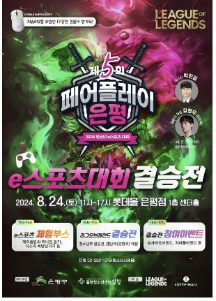 은평구는 오는 24일 롯데몰 은평점에서 ‘2024. 청소년 e-스포츠 대회’ 결승전을 개최한다고 밝혔다.