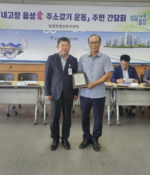 이날 ‘내고장 음성愛 주소갖기’ 유공단체로 (사)한국쌀전업농음성군연합회 삼성면분회(회장 조성복)에 군수 표창패를 전수하며, 인구감소 위기 극복에 함께 힘을 모아야 한다는 데에 공감했다.