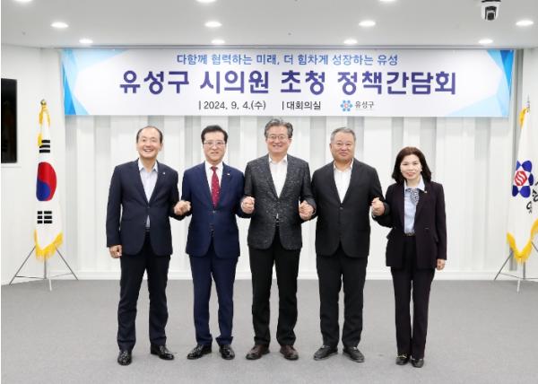 한편 유성구는 실효성 있는 정책 실행과 예산확보를 위해 지난 8월 23일 국회의원 초청 정책간담회에 이어 시의원 초청 정책간담회를 연달아 개최해 대내외 소통행보를 이어오고 있으며, 앞으로도 정기적인 간담회를 통해 협력체계를 지속적으로 강화해 나갈 예정이다.