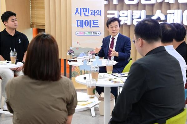 조규일 진주시장은 지난 9일 ‘진주창업지원센터’ 2층 코워킹 스페이스에서 진주창업지원센터 입주 기업 관계자 10여 명과 9월 시민과의 데이트 시간을 가졌다.