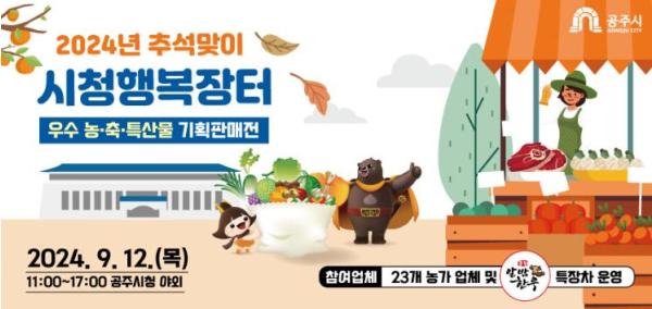 공주시는 오는 12일 공주시청 야외에서 추석 명절을 맞아 ‘시청 행복장터’를 열고 지역 우수 농축특산물을 홍보하고 판매할 예정이다.