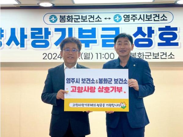 봉화군보건소와 영주시보건소 공무원들이 지난 9일 양 시군 간의 지역발전 응원에 뜻을 모아 고향사랑기부금 상호 기탁식을 가졌다.