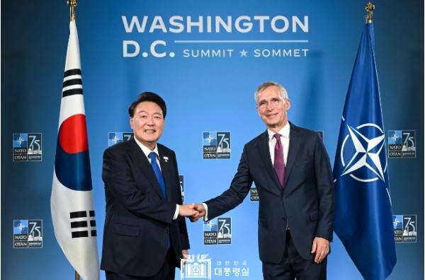 윤석열 대통령은 오늘(현지 시각 7. 11, 수) 오전 '옌스 스톨텐베르그(Jens Stoltenberg)' 북대서양조약기구(NATO, North Atlantic Treaty Organization) 사무총장을 면담하고, 주요 국제 현안과 한-NATO 협력에 대해 의견을 교환했다.