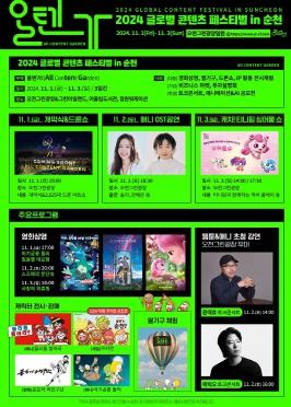 오는 11월 1일 막을 여는 '2024 글로벌 콘텐츠 페스티벌 in 순천'의 윤곽이 점차 드러나며 행사 기간 진행되는 프로그램에 대한 관심이 뜨겁다.
