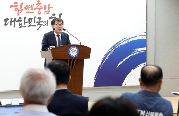 전형식 도 정무부지사는 23일 도청 프레스센터에서 기자회견을 열고, 과학기술정보통신부 이산화탄소 포집·활용 초대형 사업(CCU 메가 프로젝트) 추진을 위한 부지 선정 공모에서 서산과 보령이 전남 여수, 강원 강릉·삼척, 경북 포항과 함께 선정됐다고 밝혔다.