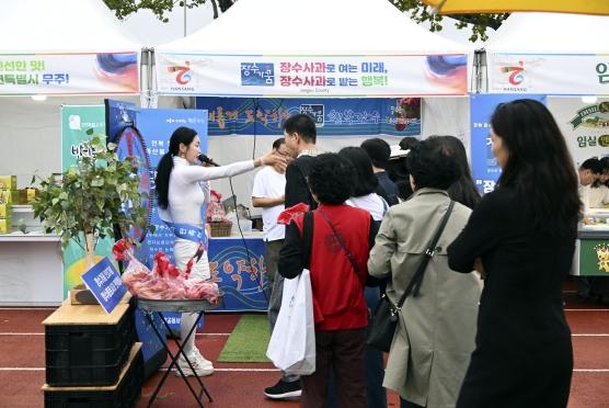 또한, 농특산물 직거래장터에서는 지역 대표 특산물인 사과를 소개해 국내외 경제인들에게 장수사과의 우수성을 알리는 역할을 톡톡히 하고 있다.