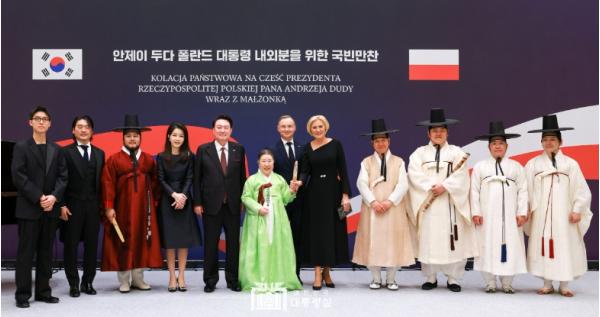 윤석열 대통령 부부는 10월 24일 저녁 청와대 영빈관에서 한국을 국빈 방문 중인 ?안제이 두다(Andrzej Duda)? 폴란드 대통령과 ?아가타 콘하우저-두다(Agata Kornhauser-Duda)? 영부인을 위한 국빈만찬을 함께 했다. 만찬에는 한국과 폴란드 관계의 발전에 큰 역할을 하고 있는 행정부, 재계, 학계 인사 50여명의 주요 인사들이 참석했다.