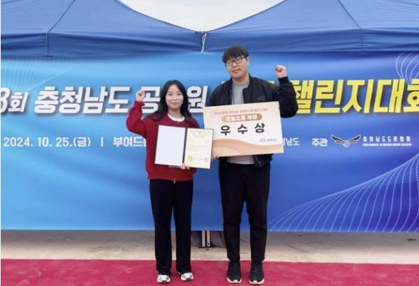 군은 25일 부여군 드론교육체험센터에서 열린 ‘2024 충청남도 공무원 드론 챌린지대회’에 정범구·서민주 주무관(이상 민원봉사과)이 드론 정밀조종 분야에 참가해 우수상을 차지하는 쾌거를 거뒀다고 밝혔다.
