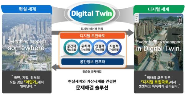 예를 들어, 인접한 지자체에서 각각 디지털 트윈국토를 만들어도 도시 간 교통량, 도시 열섬 현상, 바람길 등 종합적인 분석이 가능해진다.