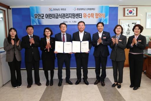 전남 무안군은 7일 관내 어린이 급식소의 안전하고 체계적인 급식지원과 영양 관리를 위해 초당대학교 산학협력단과 무안군 어린이급식관리지원센터 위수탁 업무협약을 체결했다.