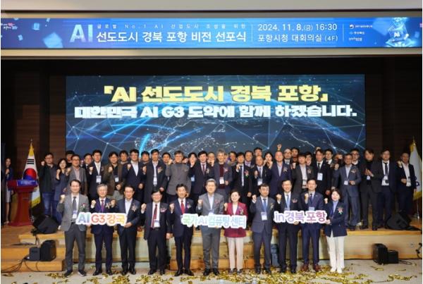 지난 8일 포항시청 대회의실에서 포항시, 과학기술정보통신부, 경상북도, 지역대학, 유관기관 관계자와 기업체 대표 등이 참여한 가운데 ‘AI 선도 도시 경북 포항 비전 선포식’이 개최됐다.